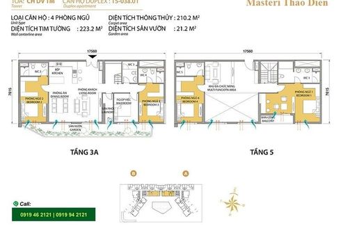 Căn hộ Duplex cần bán tại Masteri Thảo Điền có diện tích 245m2, thiết kế hiện đại gồm 2 tầng, 5 phòng ngủ, 5 phòng tắm, phòng khách thoáng rộng, phòng ăn, nhà bếp, ... có sân vườn 21m2. Căn hộ Masteri Thảo Điền cần bán căn số 01, block T5, view hồ bơi, nội thất đầy đủ nhưng thiếu giường, tv, bàn ăn. Giá bán: 18,5...
