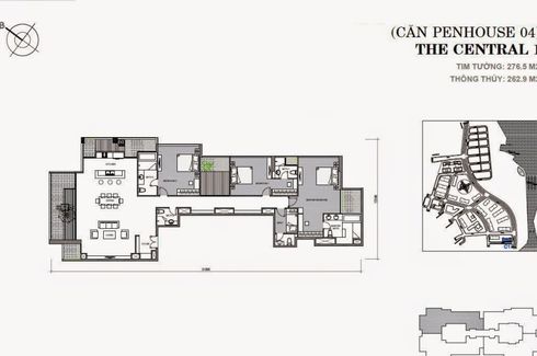 Căn hộ Penthouse tòa Central 1 DT 275m2 3PN thiết kế cao cấp view nhìn sông