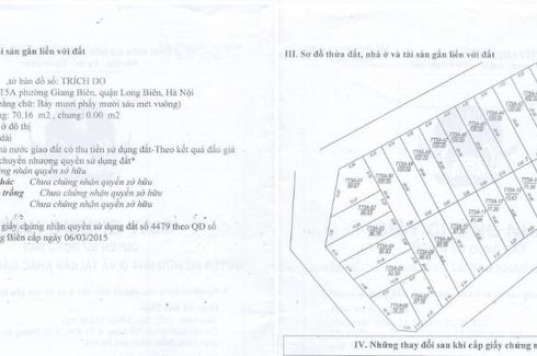 Cần bán đất đấu giá TT5 Giang Biên, phừng Giang Biên, quận Long Biên, hà Nội.Diện tích 70,16m2 mặt tiền 5m đầu đuôi như 1.Hướng đông nam.Trước nhà đường rộng 13,5m vỉa hè 2 bên, cách 10m có cây xanh. Đất đẹp, không lỗi bất cứ lỗi phong thủy nào, nói không với ngõ đâm và bốt điên trước nhà.Vị trí gần ngay đầu...