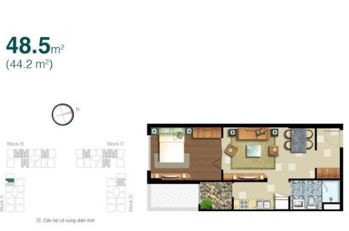 Apartment for rent of 48sqm, consisting of 1 bedroom and 1 bathroom located at An Phu, District 2.