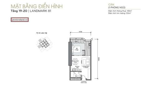Apartment for rent of 48sqm, consisting of 1 bedroom and 1 bathroom located at Phuong 22, Binh Thanh District.
