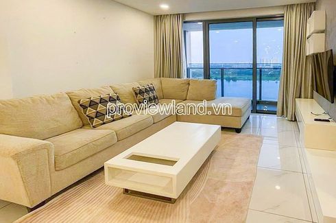 Sunwah Pearl apartment for rent on the middle floor of Silver House tower, corner unit with using area 122.3m2, designed with 3 bedrooms, 2 bathrooms, living room, office, dining room,... fully furnished. The balcony with Saigon river view brings cool air to the apartment.