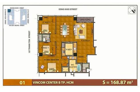 Apartment for sale, consisting of 3 bedrooms and 2 bathrooms located at Ben Nghe, District 1. Facilities include: Swimming pool, Air conditioning, Gym, Internet, Security, Car park, Garden, Tennis court, Children's area, Panoramic view, Concierge, Library, Grill and Video cable.
