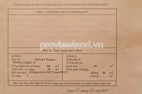 ‹ › 1/13 House for sale in Phuong 10, Ho Chi Minh District 10, Ho Chi Minh ₫ 23 billion House House for sale with 2 facades in District 10, 3/2 Street, Ward 12, District 10, HCM. Has an area of 7m wide by 12m, recognized area: 88.3m2, area 41.5m2, construction area 276m2- Structure 1 ground floor + 4 floors + terrace, with balcony around each floor. Design 4 bedrooms + 4 bathrooms, 1 beautiful kitchen. There is an elevator, the ground floor has a large living room with 3 doors, 2 windows,... Proview Real Estate Call